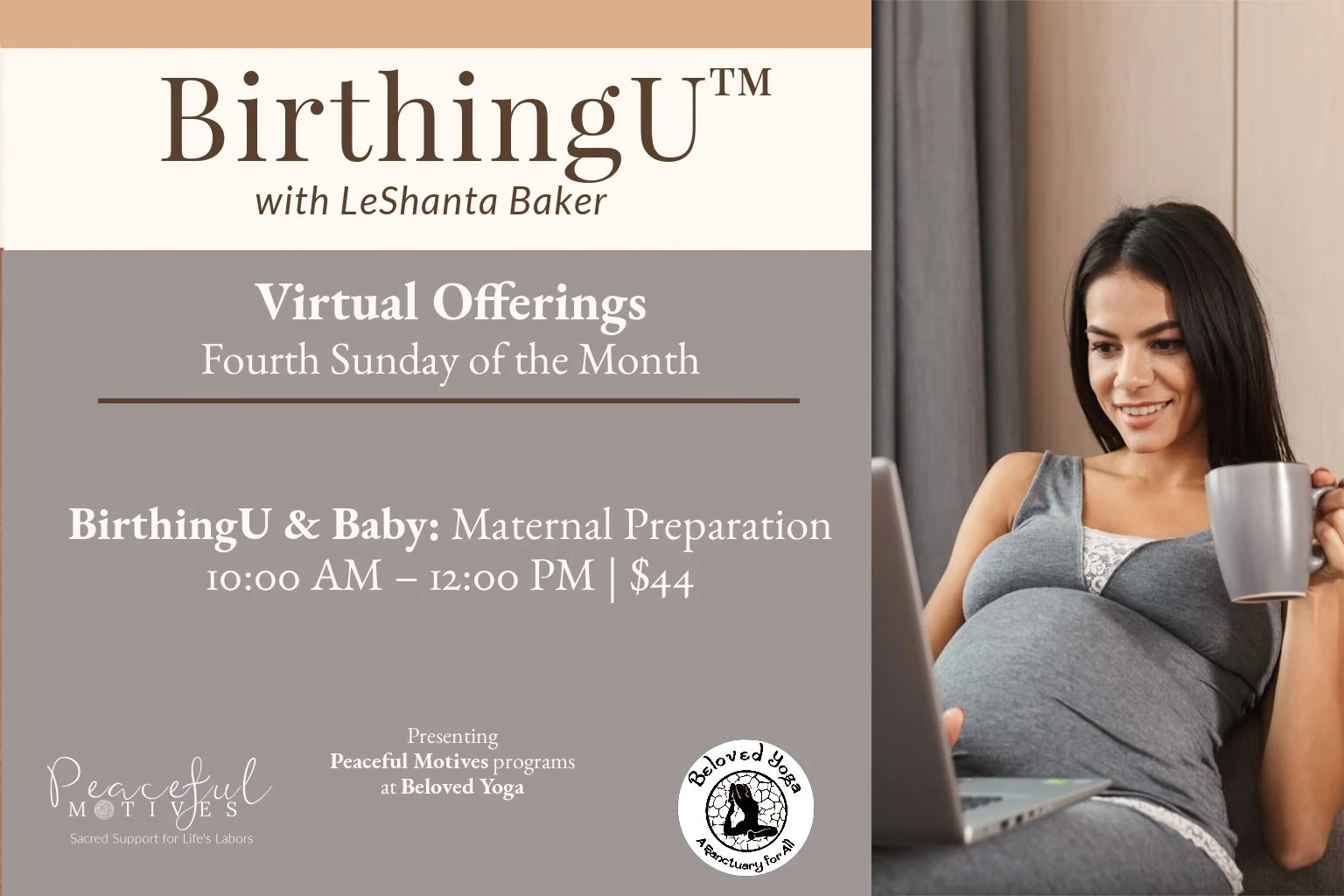 BirthingU™ & Baby: Maternal Preparation is a live, guided online workshop designed to provide a clear, comprehensive understanding of the childbirth process while also supporting the transition into motherhood and the continued navigation of womanhood.